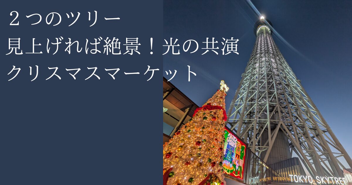 去年は神宮外苑の壮大な雰囲気あふれるクリスマスマーケットを楽しみましたが、今年は趣向を変えて、よりコンパクトで特別な絶景が楽しめる場所を選びました。向かった先は、東京スカイツリータウンのクリスマスマーケット!【2025】スカイツリー・クリス...