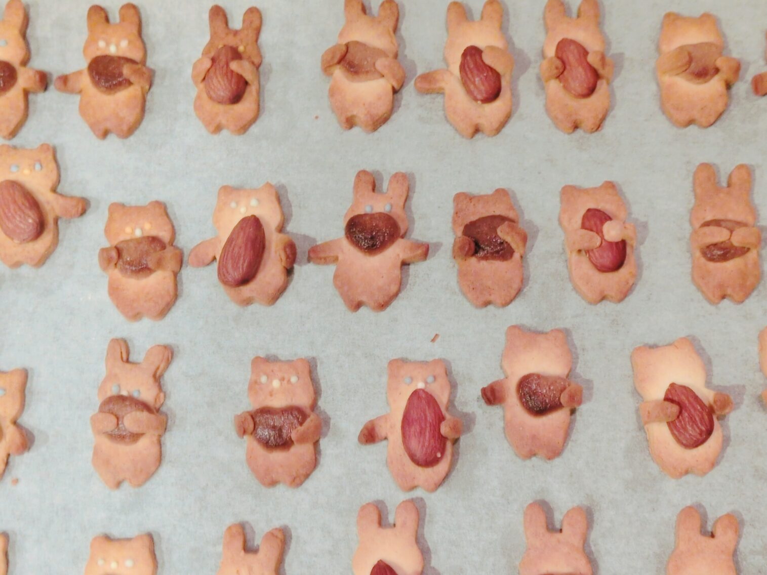 最初の失敗作。この時はアーモンドも一緒に焼いていてピンクのハートがアーモンドと同じ茶色に💦腕も抱っこできてない子が沢山💦