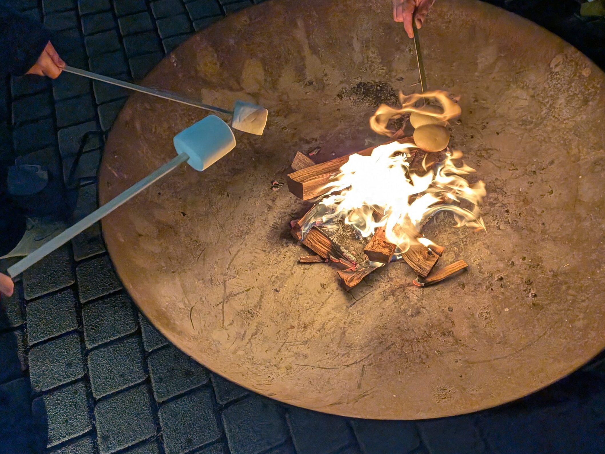 冷えた体に嬉しい!ミナモテラスの焚き火で「焼きマシュマロ」