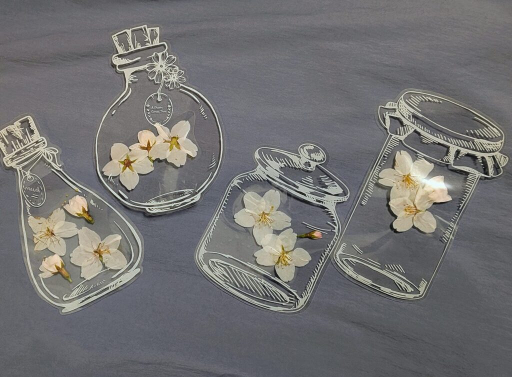 私たちは桜の下でお花見ピクニックをしていたので、贅沢に「桜の花びら」を閉じ込めてみました。
